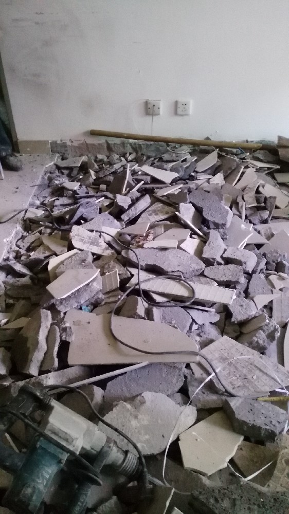 如果要更換地面中間的地磚,用錘子從前面敲碎地磚,然后將雜物清理干凈。