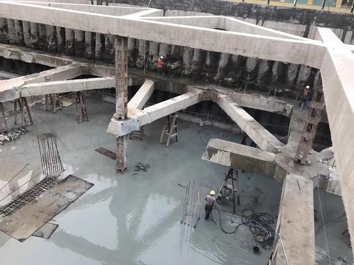 基坑深度深,需要鑿除五道內(nèi)的支撐。在基坑支撐拆除過程中,整個(gè)基坑的應(yīng)力平衡通過三種支撐結(jié)構(gòu)支撐到地塊結(jié)構(gòu)上。拆除支撐順序選擇、渣土運(yùn)輸及成品保護(hù)。施工過程安全管理。