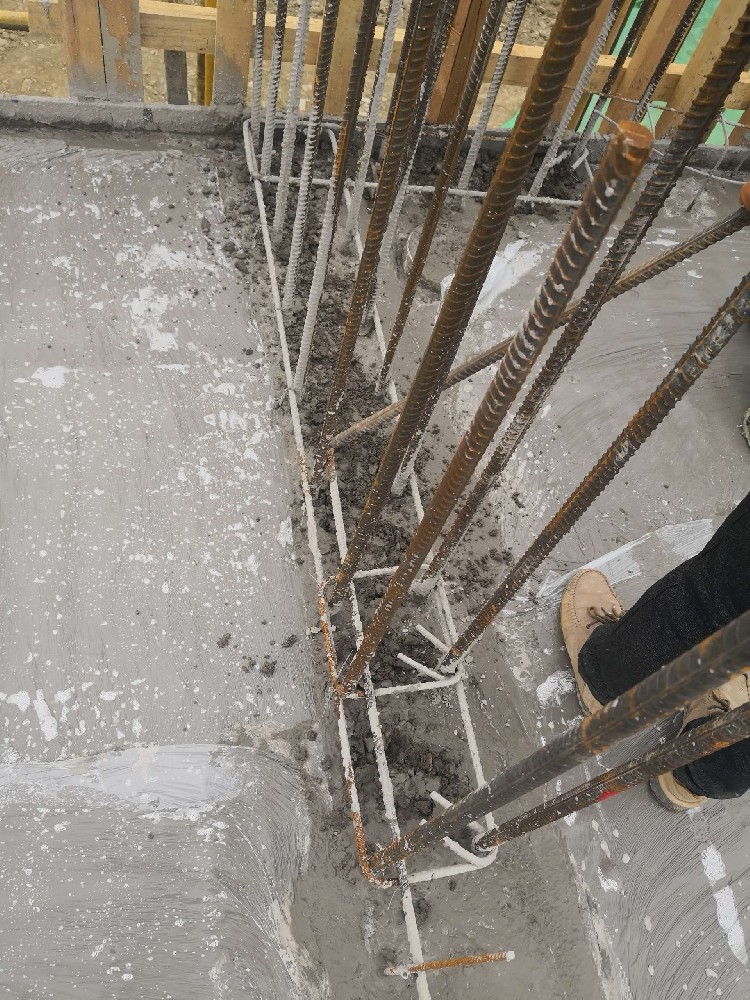 墻柱混凝土澆筑應到位,防止梁板澆筑過程中溢漿影響外觀質量。墻柱混凝土澆筑后,應及時進行二次矯正,確保結構截面尺寸正確,方形不變形。