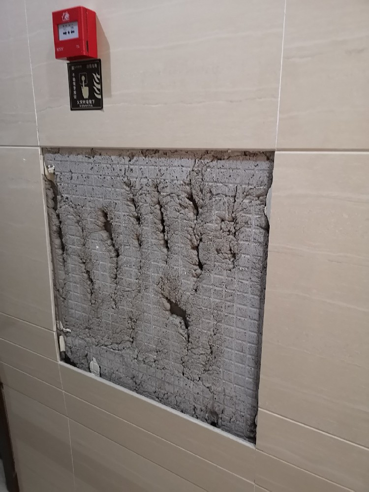 2.瓷磚中間空鼓,在空鼓處打開一個小洞,倒入水泥漿,然后用膠水修復(fù)開口位置。
