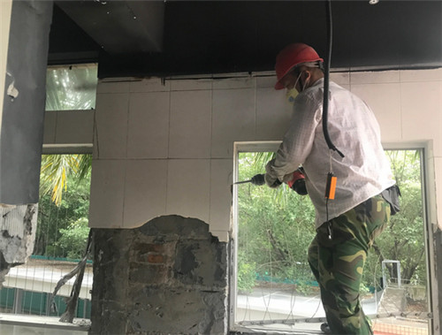 3.拆除墻體時,從底部的第一塊磚開始。如果從上面拆,很容易蓋住下面的瓷磚,影響后續的拆卸。
