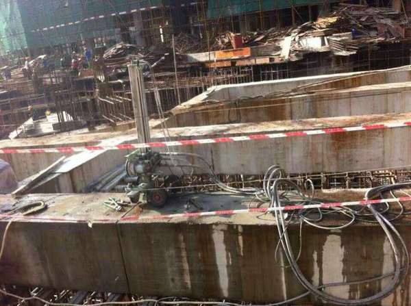 在切割和拆除基坑支撐梁的現場拍照。